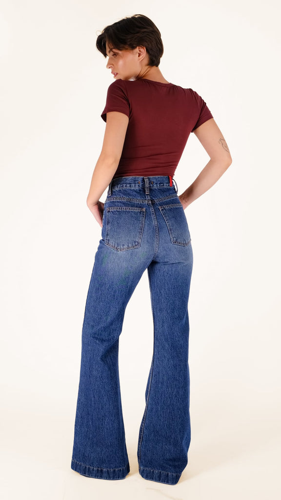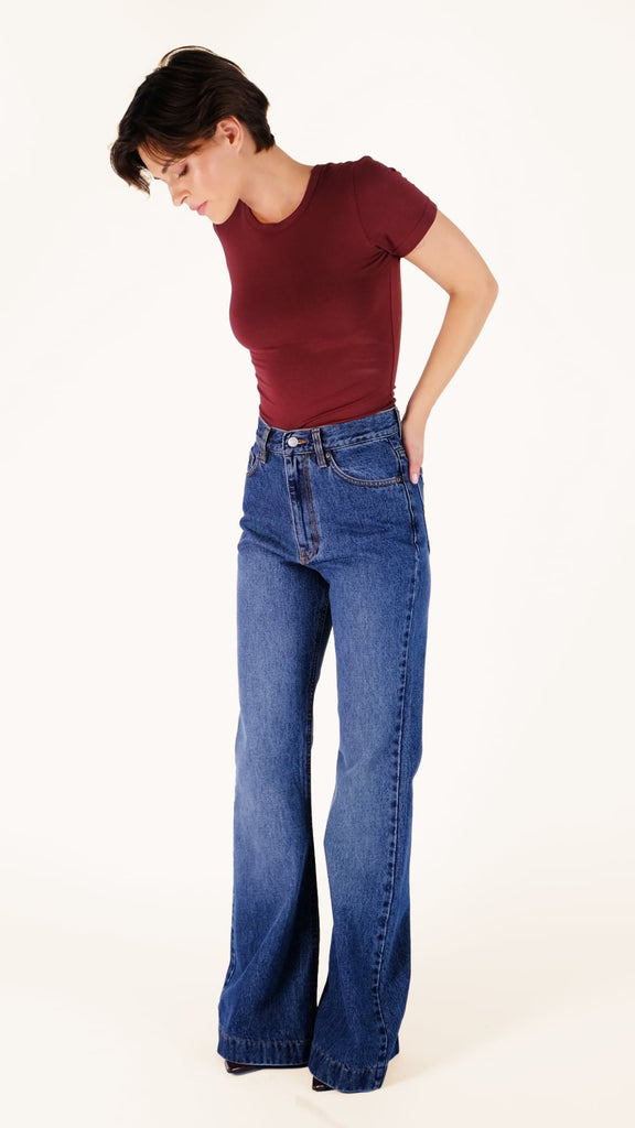 Το Alex είναι ένα νέο ψηλόμεσο jean σε flared γραμμή, φτιαγμένο από σταθερό denim που κρατά τη φόρμα του. Με εφαρμογή που αγκαλιάζει τη μέση και ανοίγει σταδιακά προς τα κάτω, προσφέρει ένα ισορροπημένο, διαχρονικό σχήμα. Ένα κομμάτι που αποπνέει αυθεντικό ’70s στυλ με σύγχρονη αισθητική,κατάλληλο για όλες τις ώρες της ημέρας.