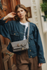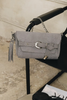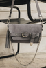 Handcrafted suede leather bag with with SILVER nickel metal details. Comes with removable leather wallet and two straps. A leather strap adjustable and a chain strap. Also comes with a removable charm.