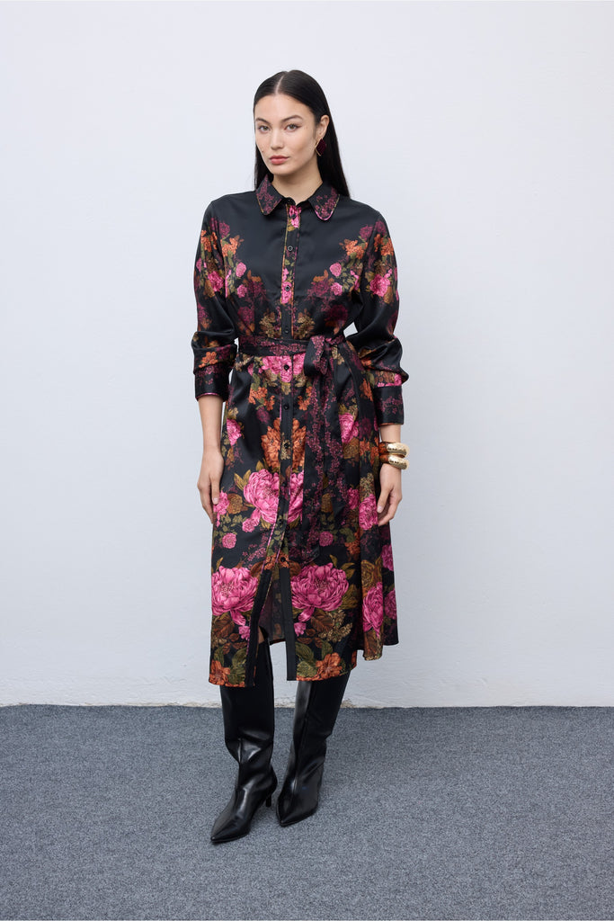 The Winter Bloom Shirtdress is made from a soft printed fabric featuring a distinctive floral print.